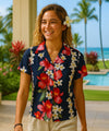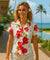 Women Hawaiian Fitted Blouse Orchid Plumeria Panel